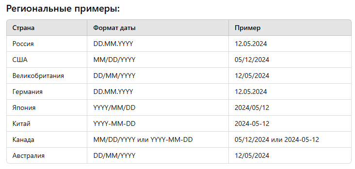 3. ISO 8601 (глобальный стандарт):