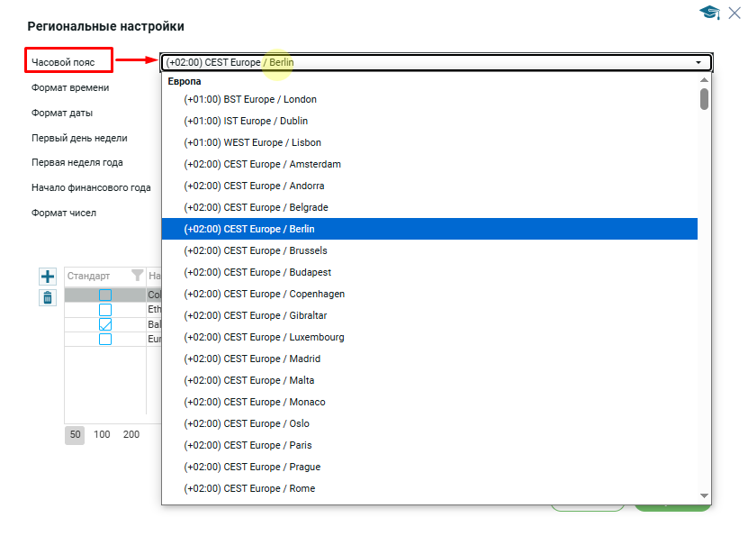 Выбрать нужный часовой пояс можно из выпадающего списка: