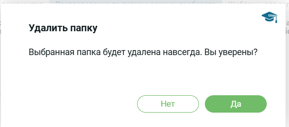 После нажатия на появляется модальное окно с возможностью подтвердить или отклонить удаление папки.
