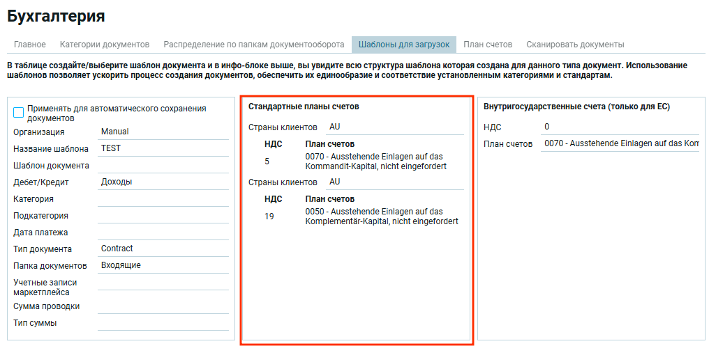 Статьи бухгалтерского учета на которых регистрируются финансовые операции компании в соответствии со стандартным план счетов внутри страны ведения бизнеса.