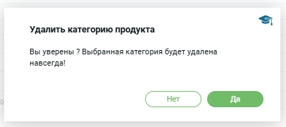 После того как пользователь выберет категорию и нажмёт кнопку «Удалить», появится модальное окно для подтверждения действия, чтобы избежать случайного удаления данных.