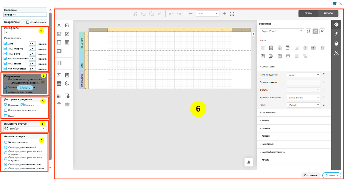 На скрине выделено 6 основных пункта, нумерация которых соответствуют пунктам в сайдбаре справа. Каждый пункт содержит более подробное описание настроек.
