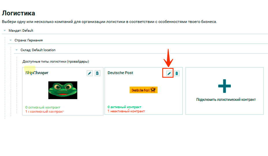 в определенной логистике, откроется второй уровень настроек.Контракты.