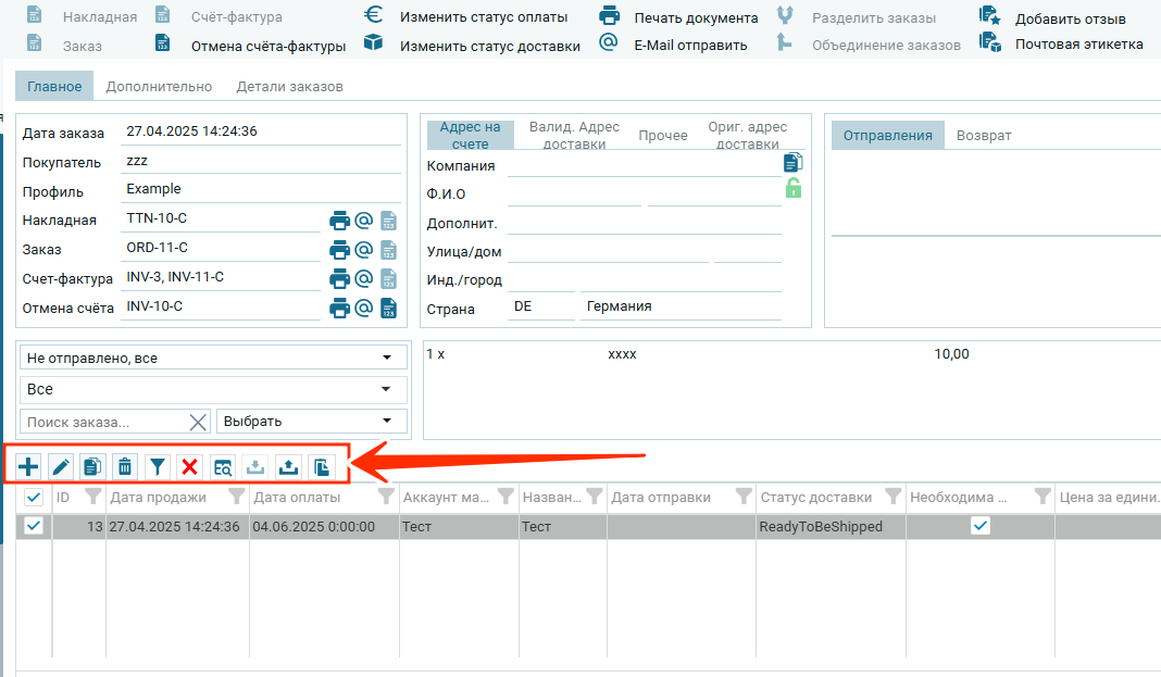 Для управления заказами и табличными данными в программе предусмотрен удобный блок с иконками. С его помощью ты можешь быстро создавать, редактировать и копировать заказы, выполнять поиск, сортировку и фильтрацию, а также настраивать отображение таблицы, выбирая только нужные столбцы.