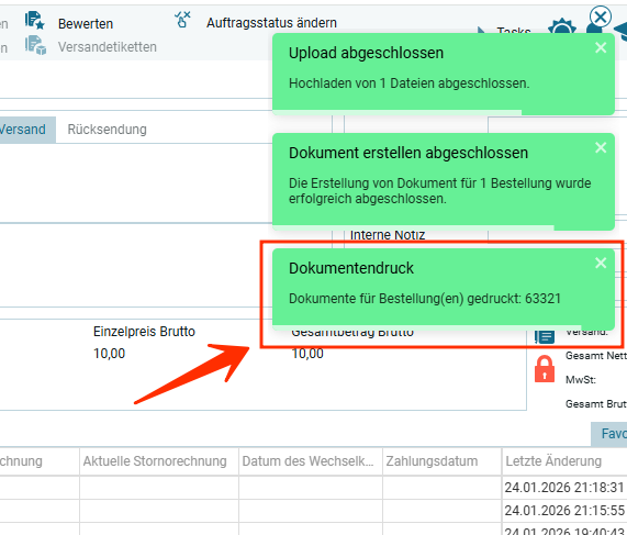 - Создание документов для X заказов завершено – это значит, документу присвоены номера и документ распределен по категориям и локациям, благодаря чему, его можно будет использовать для печати, отправки по E-Mail, а так же он отобразиться в отчетности;