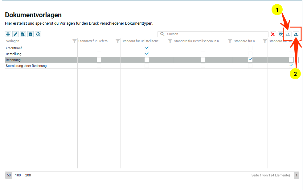 Внизу на скрине выделено две иконки: импорт данных, экспорт данных. Описание каждой функции ниже под таблицей.