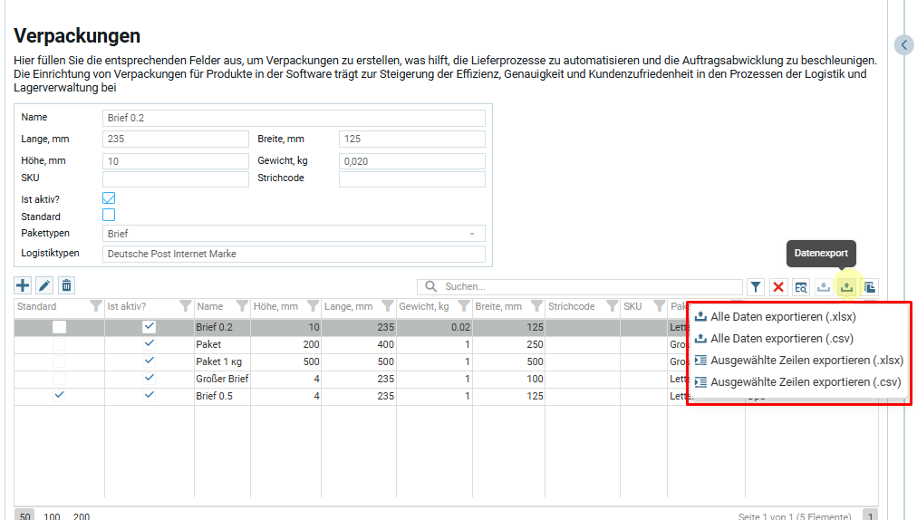 Существует функция экспорта списка данных в Excel и CVC форматы. Нужно нажать на стрелочку вверх в правом верхнем углу над таблицей.