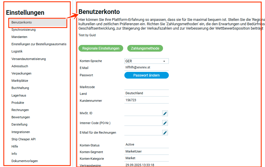 ERP.ES. Einstellungen
