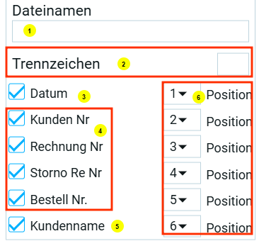 - Далее, нужно в имени фигурировала дата, значит ставим галочку в поле Дата. Дата будет стоять в конце, ставим порядковый номер 3;
