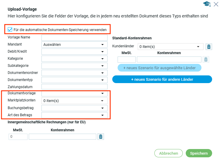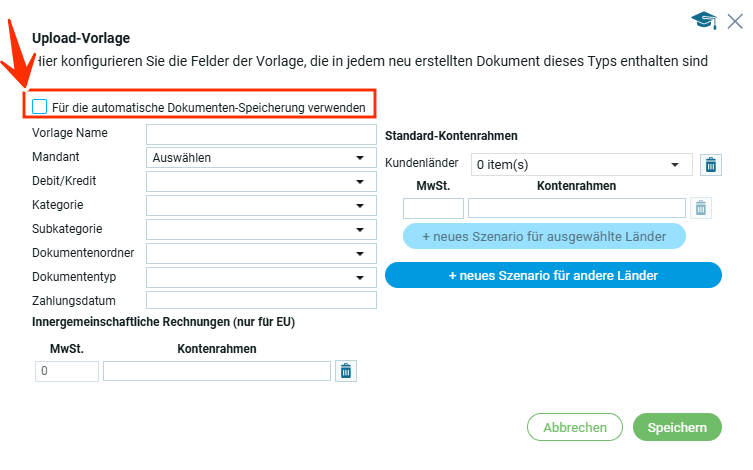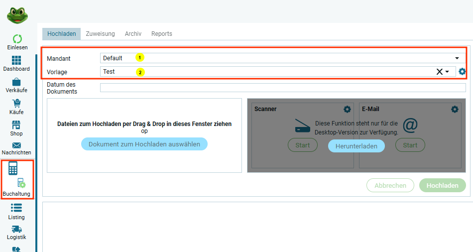 Если чекбокс неактивен, загрузка документа в систему осуществляется вручную через вкладку „Бухгалтерия → Загрузка„.