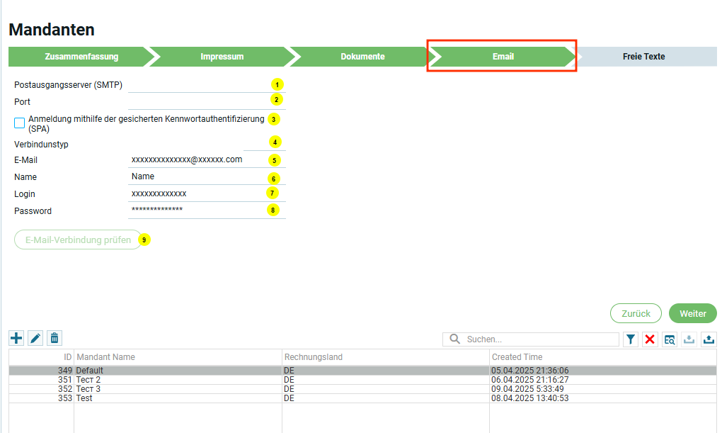 Вкладка E-Mail – настройка электронной почты для автоматической рассылки корреспонденции.