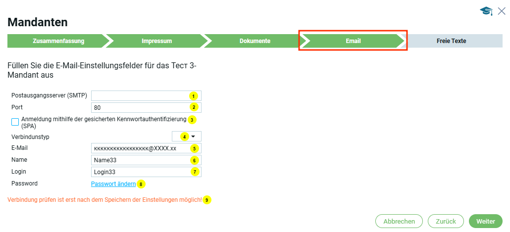 Вкладка E-Mail – настройка электронной почты для автоматической рассылки корреспонденции.