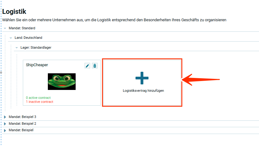 Для этого нужно нажать на крестик в модуле „Подключить логистический контракт“.