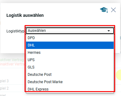 Откроется модальное окно, где нужно из списка типов логистик выбрать ту, где у пользователь уже есть действующий аккаунт.