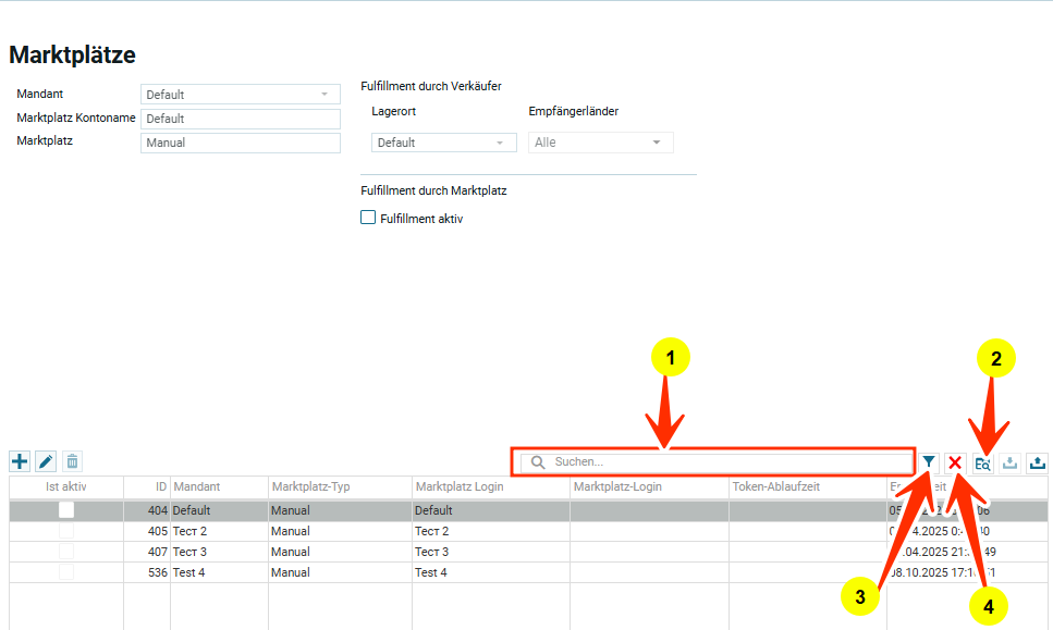 Оптимизация списков торговых площадок или работа с данными в таблице включает (пункты в списке соответствуют нумерованным кружочкам на скрине):