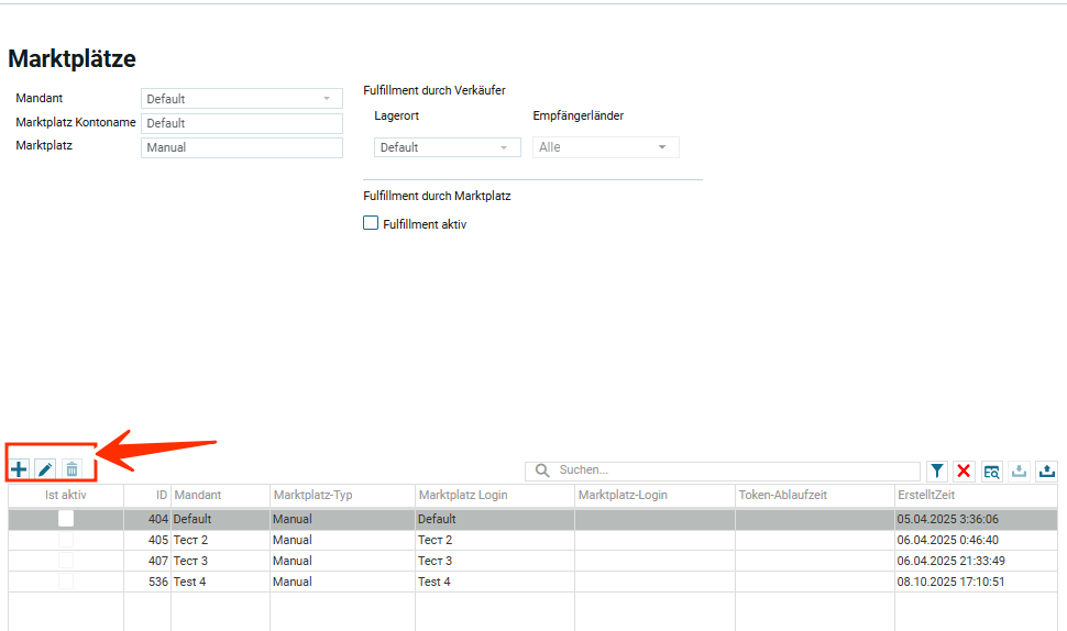 отвечает за создание объектов в таблице. Нажми на кнопку и появится модальное окно для создания торговой площадки.