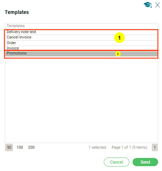 Для отправки E-Mail документов нужно выбрать заказ или заказы и нажать на опцию в функциональном меню “E-Mail отправить” после чего откроется модальное окно с шаблонами для отправки. Есть три модальных окна: