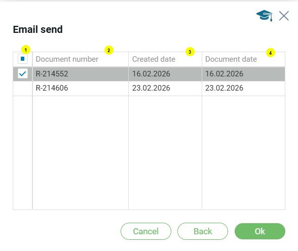 - Чек бокс для выбора документов;