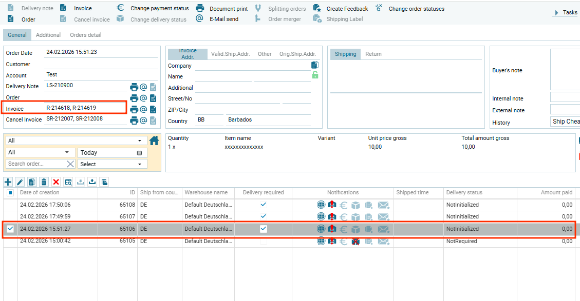 Например, в одном заказе создано две счет-фактуры: