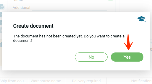 В этом случае появится окно с предложением создать документ и если нажать на ”Ok“, то появиться модальное окно для создания документов.