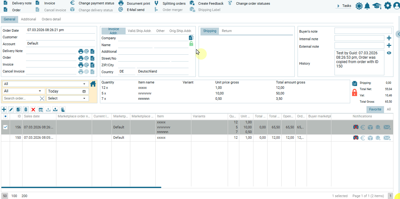 Новых заказов может быть столько, сколько номенклатурных единицы в заказе доноре. Например в заказе доноре три товарных позиции, значит разделить заказ возможно на три новых заказа. При разделении заказа, старый заказ перестает существовать,образуются новые заказы с присовенными новыми ID.