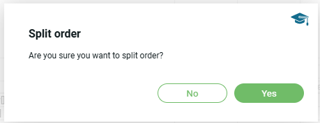 Если после разделения заказа нажать на кнопку Сохранить, появится модальное окно с подтверждением или отменой разделения заказа: