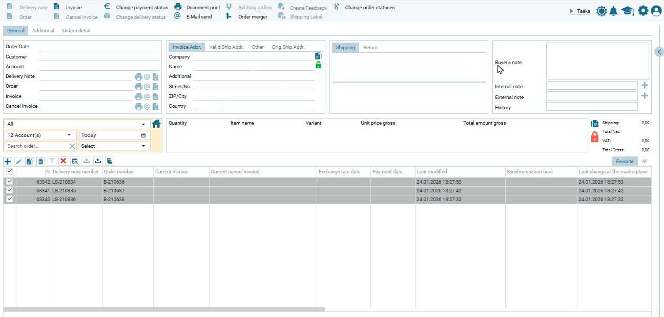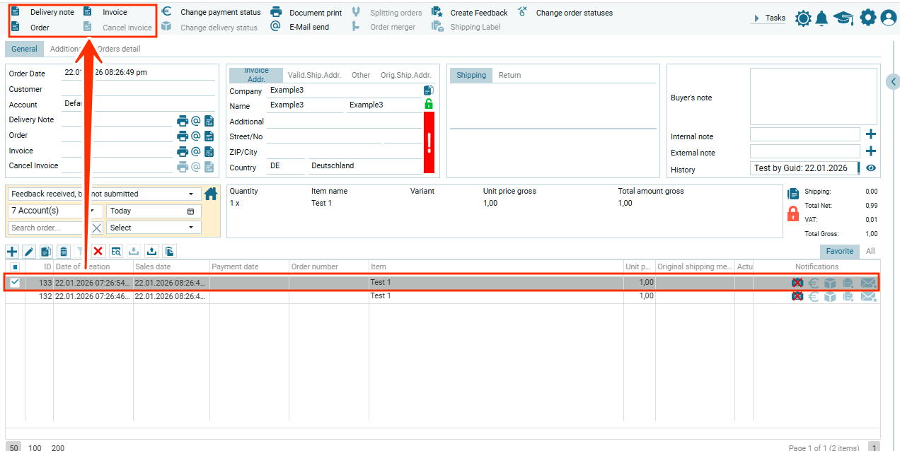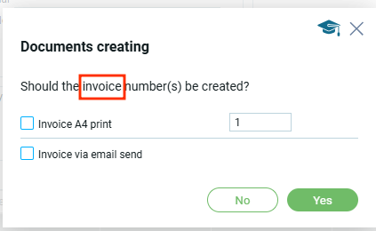 Обрати внимание, что в таблице выделено 3 заказа и в модальном окне предлагается создать 3 документа, в данном случае 3 счет-фактуры.