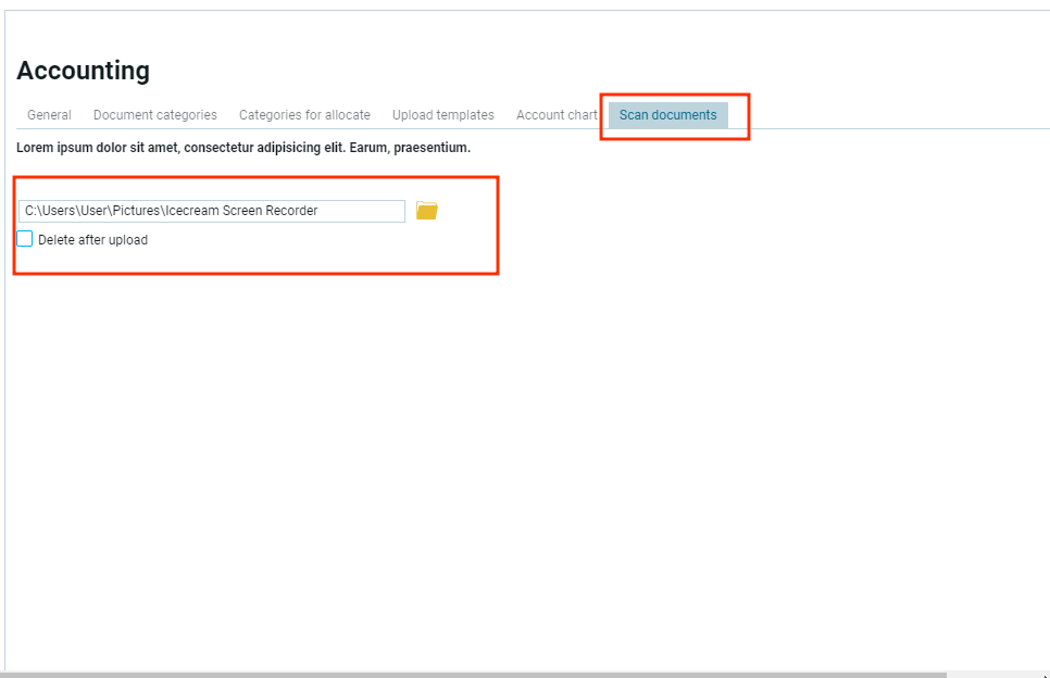 SET.ACC.SD. Вкладка Сканирование документов