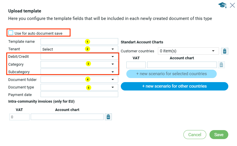 - Загруженному документу присваиваются параметры, которые установлены в выбранном шаблоне: