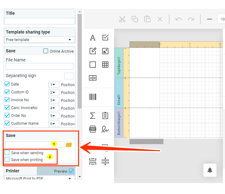 • Сохранить при печати – настройка, при которой документ автоматически сохраняется в указанное место в момент его печати.