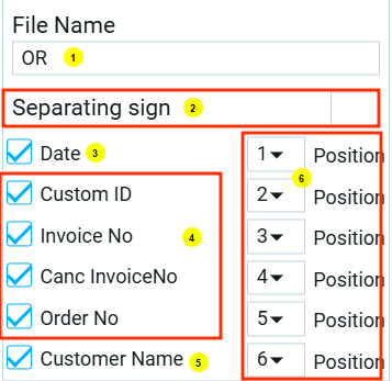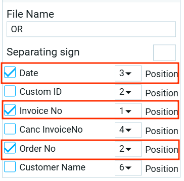 - Далее, нужно в имени фигурировала дата, значит ставим галочку в поле Дата. Дата будет стоять в конце, ставим порядковый номер 3;