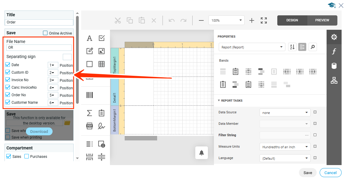 Имя файла конструируется в модуле после названия шаблона. Именно этот идентификатор документа, состоящий из букв, даты и номеров других документов, будет отображаться в системе, например в отчетности.