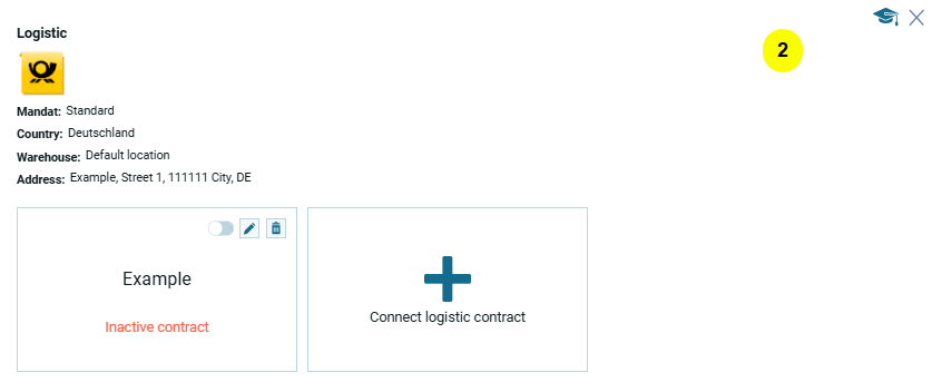 Второй уровень настроек — это список контрактов определенной логистики. У пользователя может быть больше, чем один контракт, в зависимости от логистических продуктов и методов доставки.
