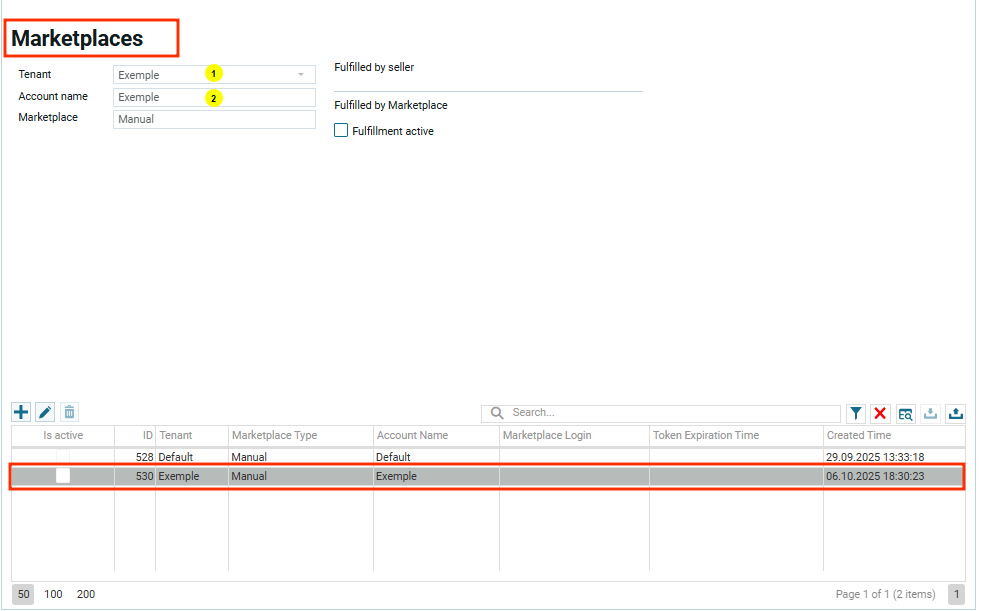 С дефолтной организацией автоматически создается мануальный аккаунт в торговых площадках, т.е. аккаунт предназначенный для создания заказов вручную без синхронизации с торговыми площадками.
