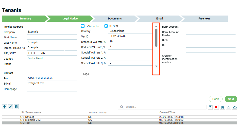 Если страна в блоке “Юридический адрес” выбрана, например Германия, то в первом блоке “Информация по НДС” страна автоматически будет Германия.