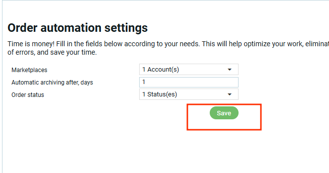 Чтобы выбранные параметры были применены для автоматизации заказов, необходимо нажать кнопку «Сохранить».