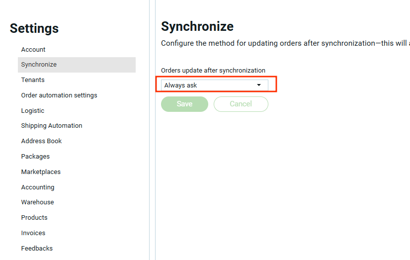 3. Чек-бокс “Запомнить на будущее” – после активации этой функции, заказы будут загружаться/обновляться автоматически без дополнительных вопросов. В настройках синхронизации способ обновления заказов переключится на “Автоматически“.