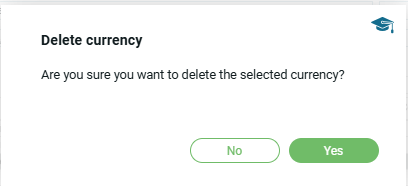 Нажми Да, если нужно удалить валюту или Нет для отмены удаления.