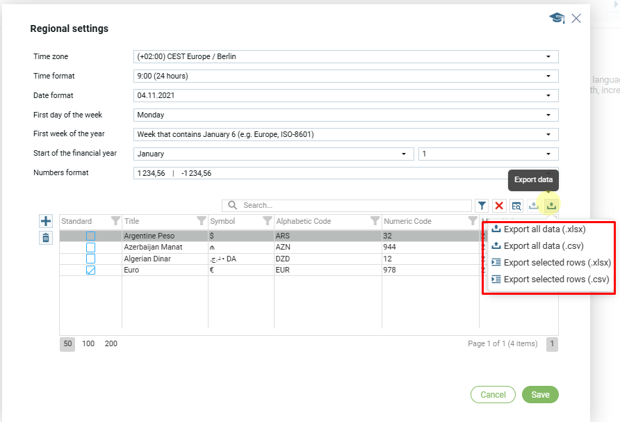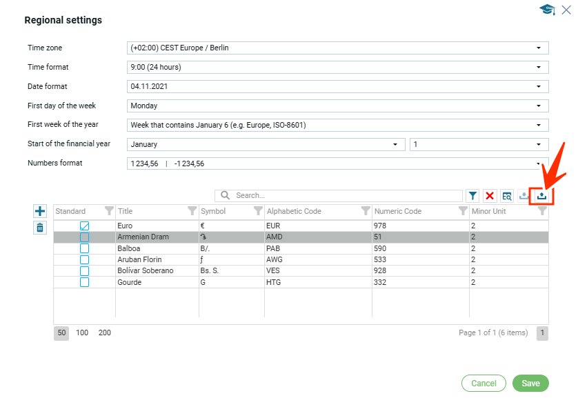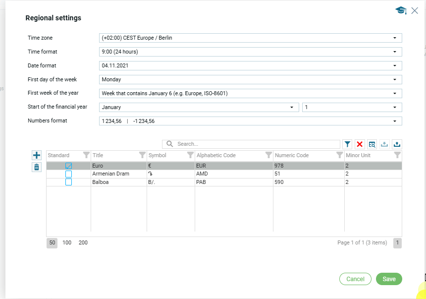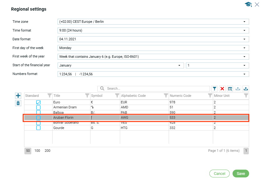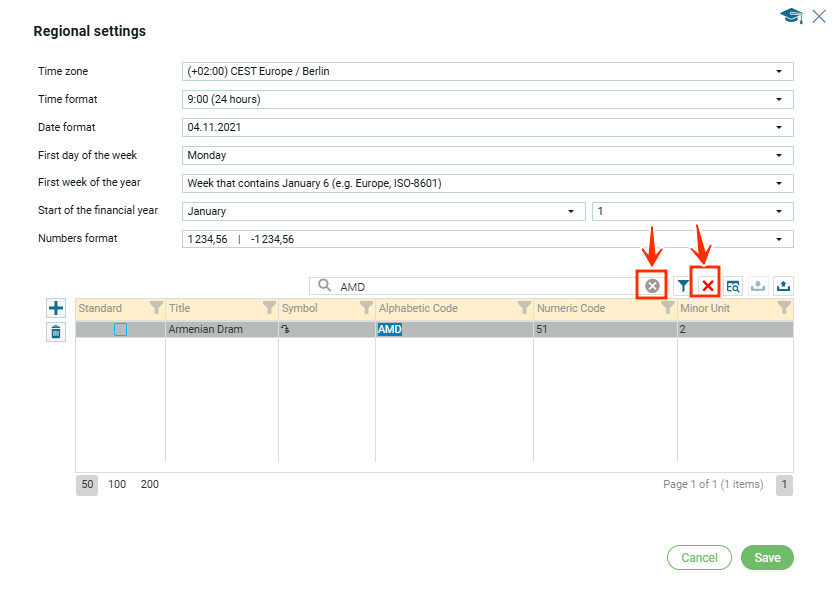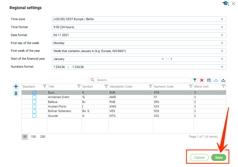 Для окончательного сохранения всех региональных настроек, в том числе и состояния в списке валют, необходимо нажать кнопку “Сохранить” – для сохранения или “Отменить” для отмены изменений. Только в этом случае все созданные настройки начнут работать на платформе.
