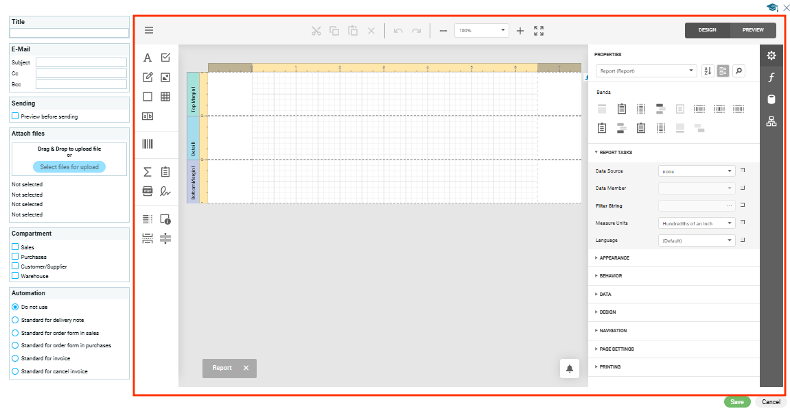 Конструктор для создания шаблонов — это инструмент в системе, который позволяет настраивать внешний вид и структуру печатных форм документов.
