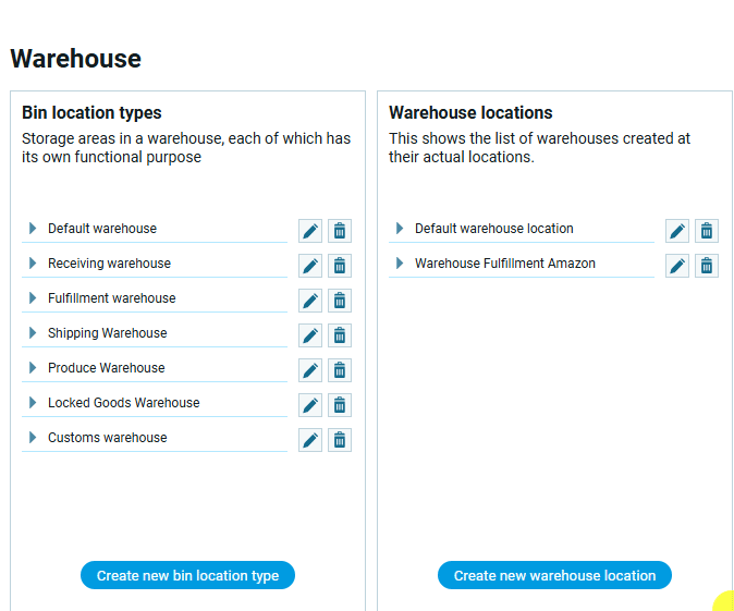 SET.WH. Bin location types
