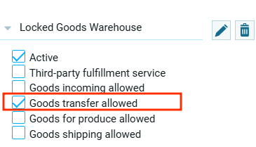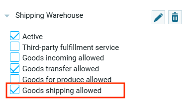 - Отгрузка товаров разрешена – это значит, что из данной складской ячейки можно осуществлять отправку товаров клиентам или в другие локации;