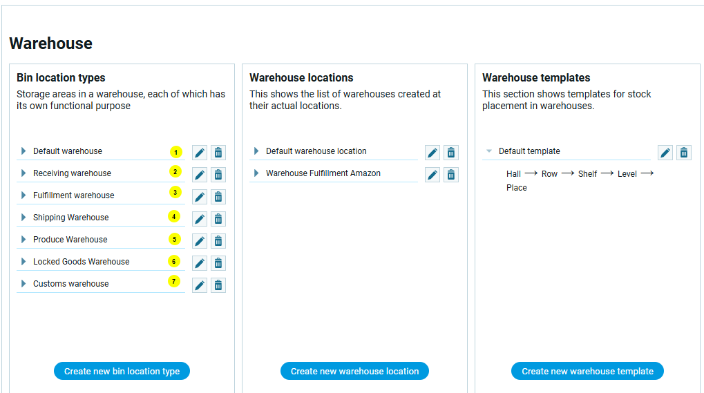 Типы складских ячеек – это классификация всех точек хранения внутри склада по их функциональному назначению. Позволяет гибко настраивать правила складского учёта (куда и каким образом автоматически распределять поступившие товары).