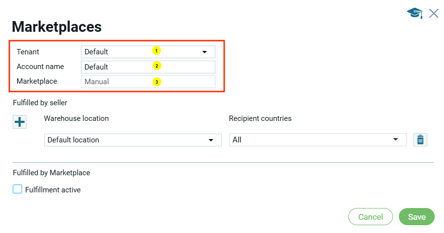 Название (2) – название торговой площадки пользователя, которе будет отражаться в ERP системе. Пользователь вносит в поле название самостоятельно.