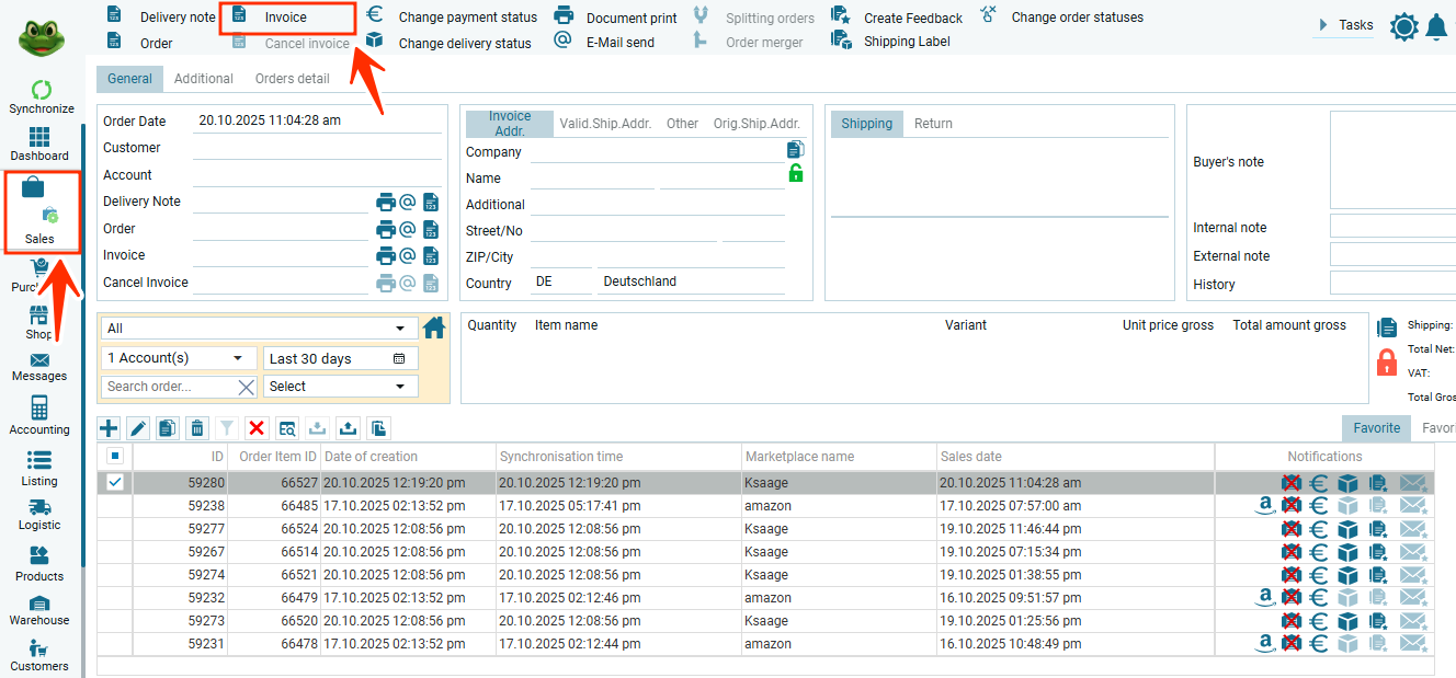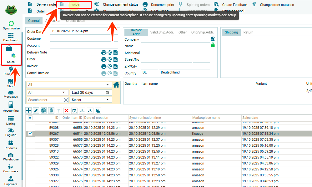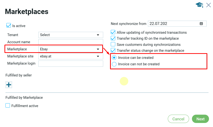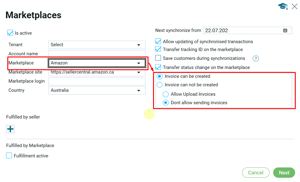 Для платформ Amazon и Kaufland предусмотрена разрешение на создание и отправку счетов.