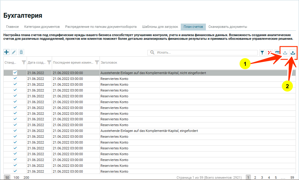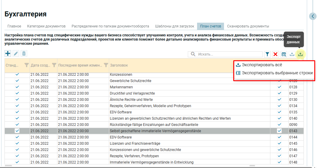2. Экспорт счетов