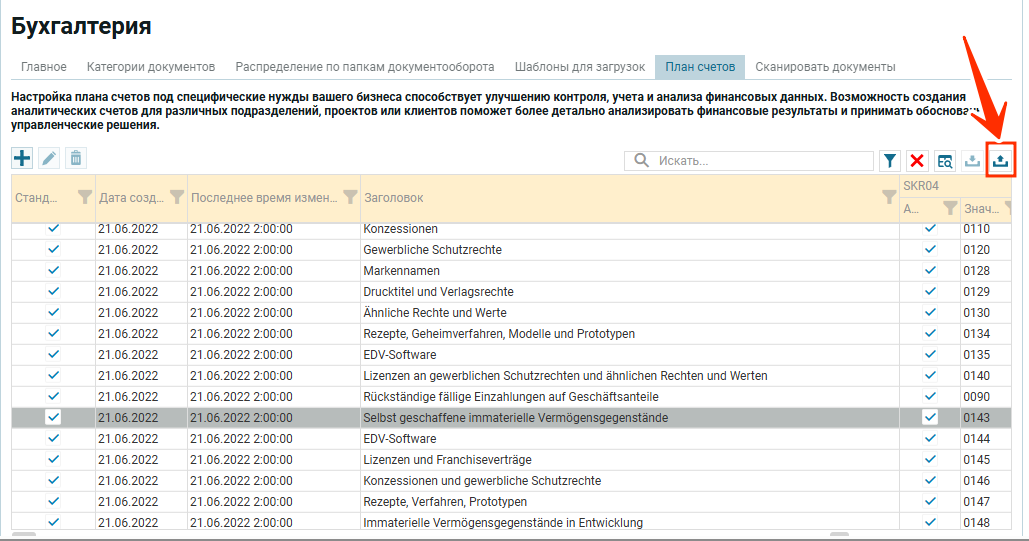 Внизу на скрине выделено две иконки: импорт данных, экспорт данных. Описание каждой функции ниже под таблицей.