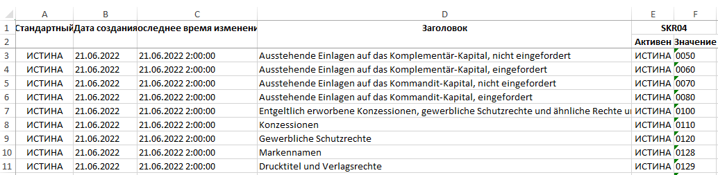 SET.ACC.AC. Импорт / экспорт табличных данных