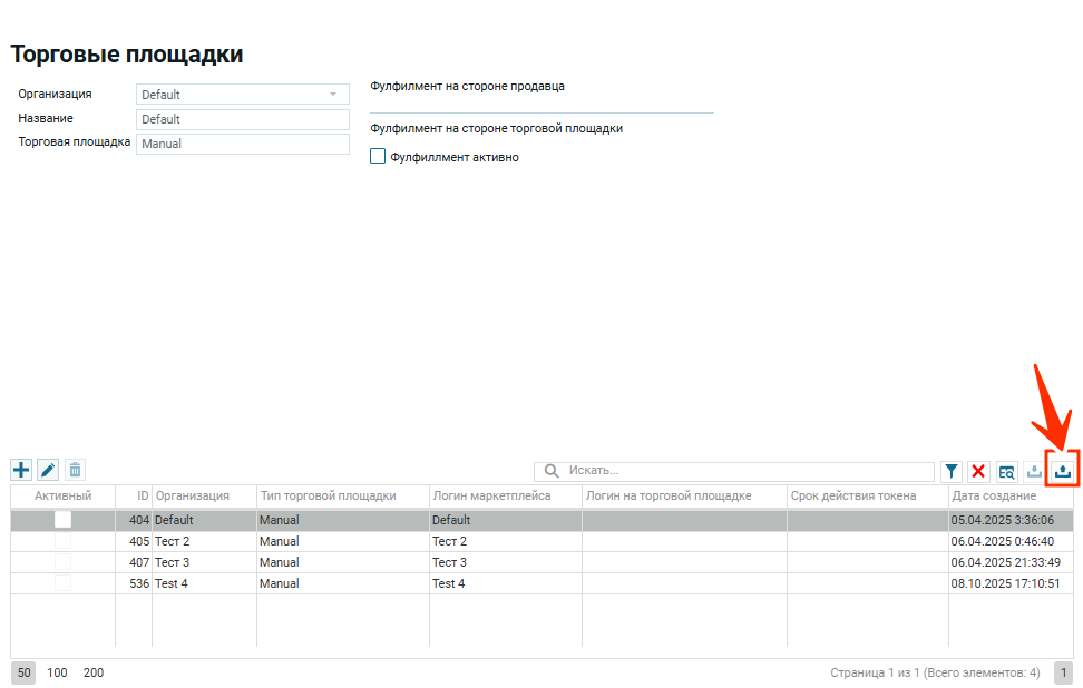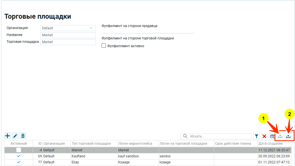 Внизу на скрине выделено две иконки: импорт данных, экспорт данных. Описание каждой функции ниже под таблицей.