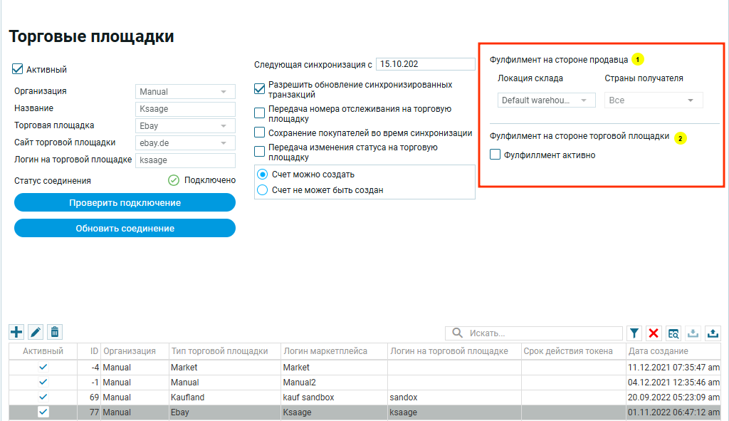 На примере торговой площадки eBay рассмотрим какие настройки складов доступны в ERP Billorga.